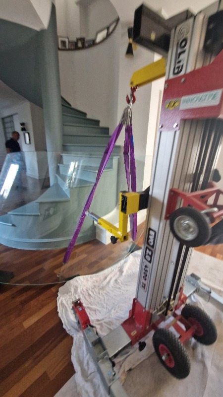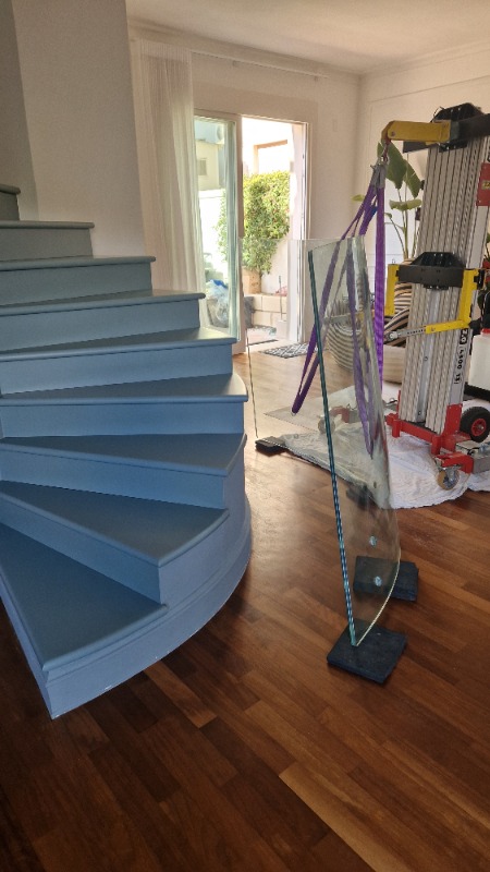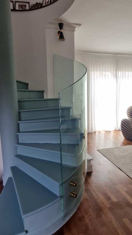 In quest'abitazione di pregio abbiamo provveduto a montare un parapetto in vetro curvo in un unico pezzo come richiesto e dotato di attacchi puntuali in acciaio color oro. Ci siamo occupati della gestione al 100% dal rilievo alla progettazione sin al posizionamento. Il risultato finale parla per noi